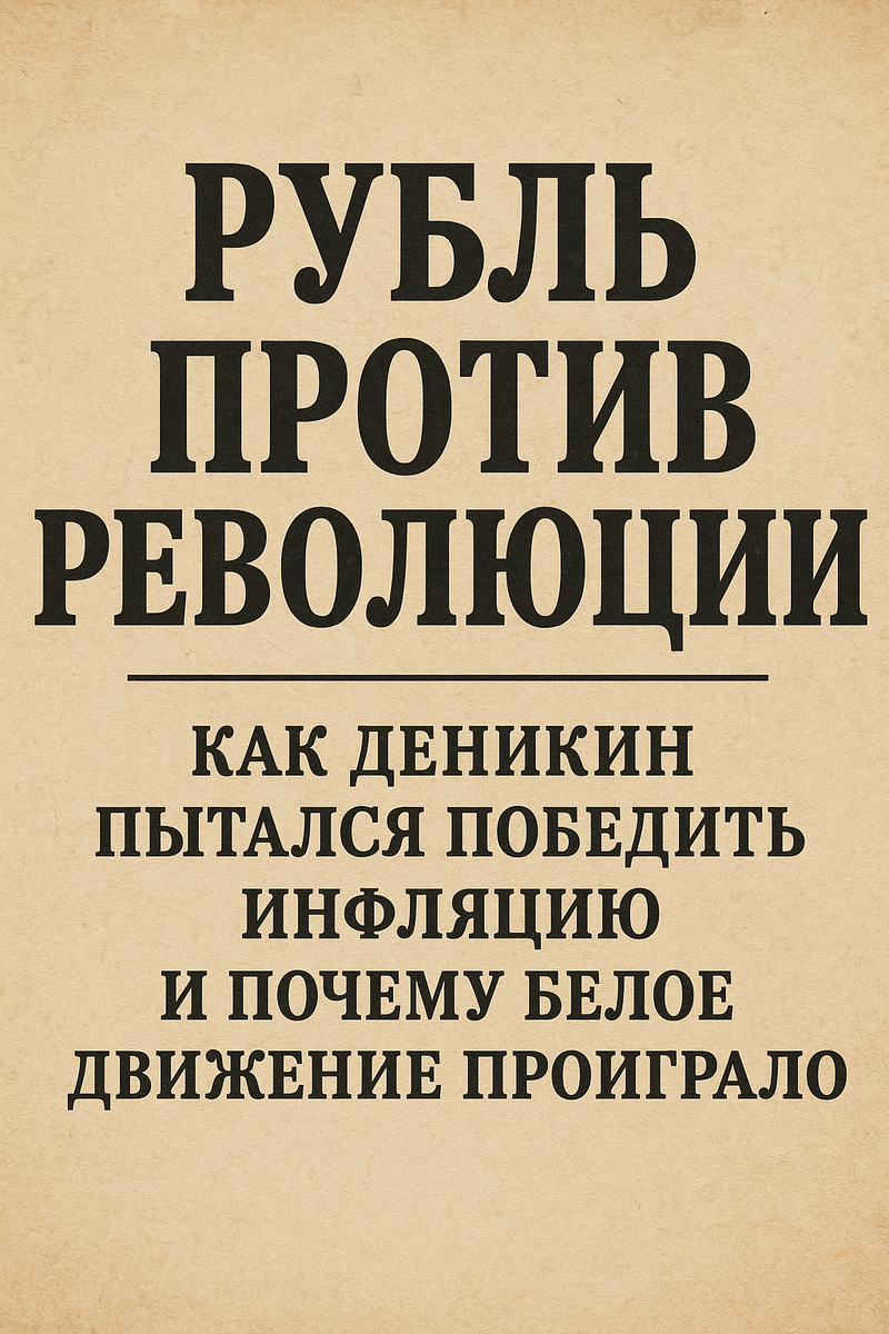 Белое движение, сражавшееся за «единую и неделимую Россию», проиграло не только на фронтах, но и в кошельке. Финансовый хаос подорвал веру населения, парализовал торговлю, лишил армию снабжения. Аннулирование денег, неразбериха с валютами, паника и инфляция стали тихими могильщиками Белого Юга.