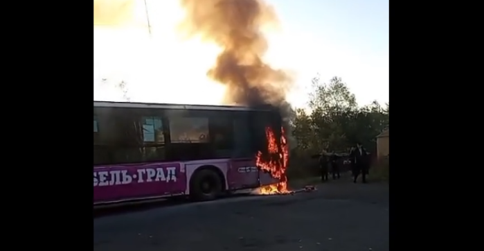 Хорошо, что автобусы работают на соляре. Дизель в отличие от бензина довольно тяжело загорается / Скриншот кадра видео из социальных сетей