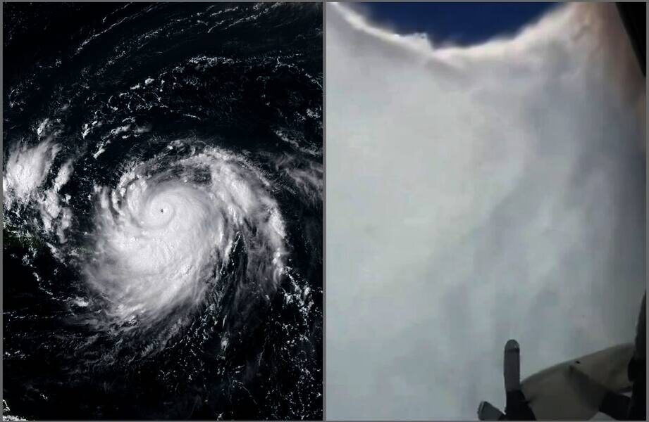Пилоты засняли шторм «Эрин» изнутри. Американская метеорологическая разведка пролетела прямо через центр урагана «Эрин». В метеорологической разведке США есть особое 53 подразделение, которое называют «охотниками за ураганами». Их задача ― запечатлеть шторм изнутри и собрать данные о стихии до того, как она достигнет побережья. Недавно «охотникам» удалось заснять ураган «Эрин», и эти кадры просто невероятны! Шторм «Эрин» сформировался 11 августа, но уже через четыре дня стихия достигла статуса урагана и стала приближаться к Малым Антильским островам. Именно туда направились охотники. Когда они попали внутрь, то увидели перед собой стены из облаков, сквозь которые просвечивает полоска голубого неба. Затем пилоты направили машину глубже в стену урагана, туда, где стихия проявляет себя с максимальной силой, и видеосъемка превратилась в хаос. Камеру заливал проливной дождь, а ураганный ветер полностью затмевал обзор: разглядеть внутри стихии было ничего невозможно. «Эрин» в итоге не достиг