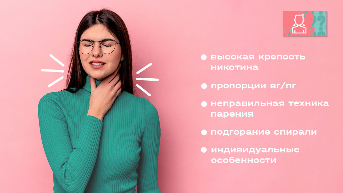 Причины могут быть самыми разными: от состава жидкости до техники использования устройства. Ниже — пять самых частых факторов, которые могут вызывать дискомфорт при вейпинге.