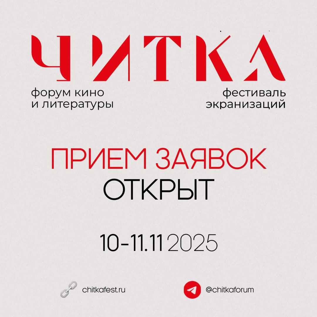 Фестиваль экранизаций и форум кино и литературы «Читка», ставший ключевой площадкой для диалога кинематографа и литературного сообщества, открывают приём заявок на участие в конкурсных программах. Четвёртый смотр состоится 10-11 ноября в Москве.