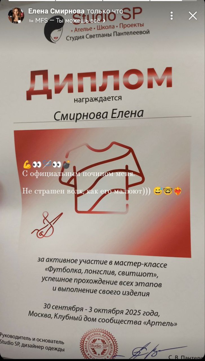 Так что, с почином меня, официально))). Хотя я и сама до этого уже шила несколько изделий 🔥 юбки, и два платья. Сама по наитию делала и раскроила и сшила платья, которые хотела за три дня каждое. Но, тут все четко 😅❤️🔥 по технологии и как надо, построение, расчет всего, крой , шитье. Поздравляю себя и благодарю! ☺️💪🙏💯