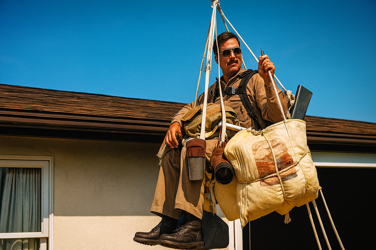 Южная Калифорния. 2 июля 1982 года. Во дворе скромного дома в Сан-Педро мужчина в шортах и рубашке поло проверяет веревки. На стуле, к которому он привязан, — 42 воздушных шара, наполненных гелием. Каждый размером почти с человеческий рост. Соседи высунулись из окон. Кто-то уже достал фотоаппарат.