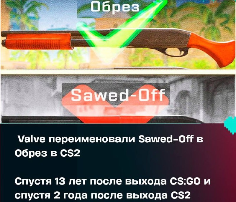 ⚡️Valve переименовали Sawed-Off в Обрез в CS2 всего лишь через 13 лет после выхода CS:GO и 2 года после выхода CS 2