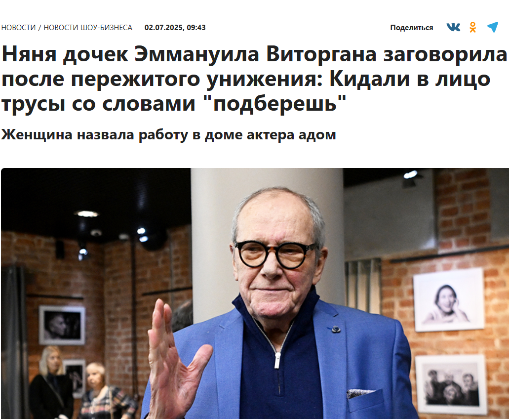 Виторганы не остались в стороне и опубликовали ответный пост, где попытались развеять все обвинения. Они назвали бывшую няню Николь Кононовой, найденную во время отпуска в Юрмале, и обвинили ее в профессиональном блогерстве: женщина якобы ежедневно снимала детей и публиковала видео в своих аккаунтах без разрешения. Кроме того, на одном ролике она оставила девочек одних на качелях в парке, чтобы рекламировать себя. Семья подчеркнула, что все равно выплатила ей зарплату и пожелала удачи, несмотря на "грязь" и "ненормативную лексику" в ее постах. По их версии, няня оказалась "недалекой" и "распущенной", а сама ситуация — классическим конфликтом с соцсетями.