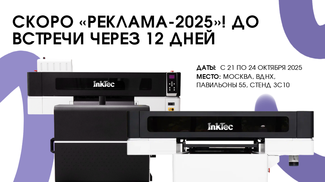 Мы рады сообщить, что компания InkTec примет участие в выставке РЕКЛАМА 2025! Даты: с 21 по 24 октября 2025 года