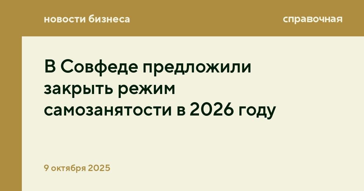 🪅 В Совфеде предложили закрыть режим самозанятости в 2026 году