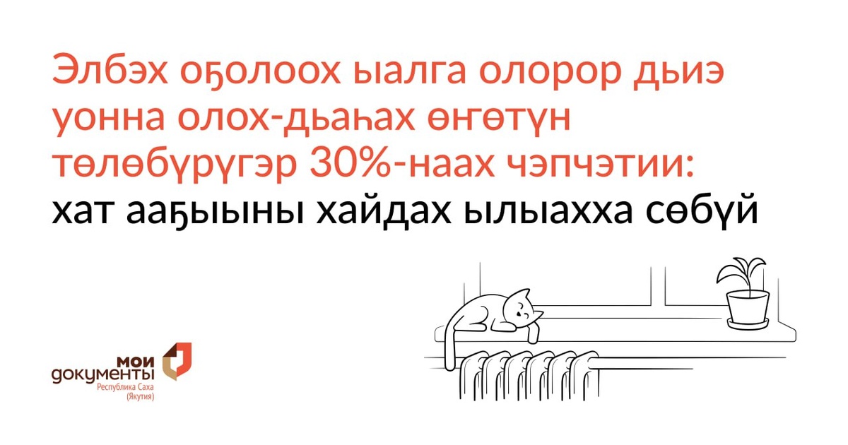ℹ️2024 сыл балаҕан ыйын 1 күнүттэн өрөспүүбүлүкэ элбэх оҕолоох ыаллара олорор дьиэ уонна олох-дьаһах төлөбүрүн 30%-нын толуйуутун ылар бырааптаахтар. Билигин ол толуйуу сыл түмүгүнэн бэриллиэхтээх толору сууматын ыларга хат ааҕыыга сайабылыанньа биэрэр кыах үөскээтэ.