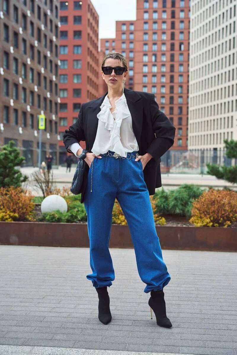 Укороченный пиджак — это про современность и акцент на фигуру. Он подчёркивает талию, визуально удлиняет ноги и делает образ более дерзким и динамичным. Такой вариант подойдёт тем, кто любит тренды и лёгкий флер уверенности.