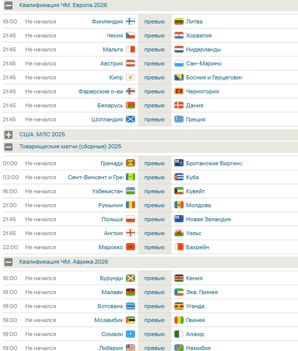 Матчи сборных на сегодня