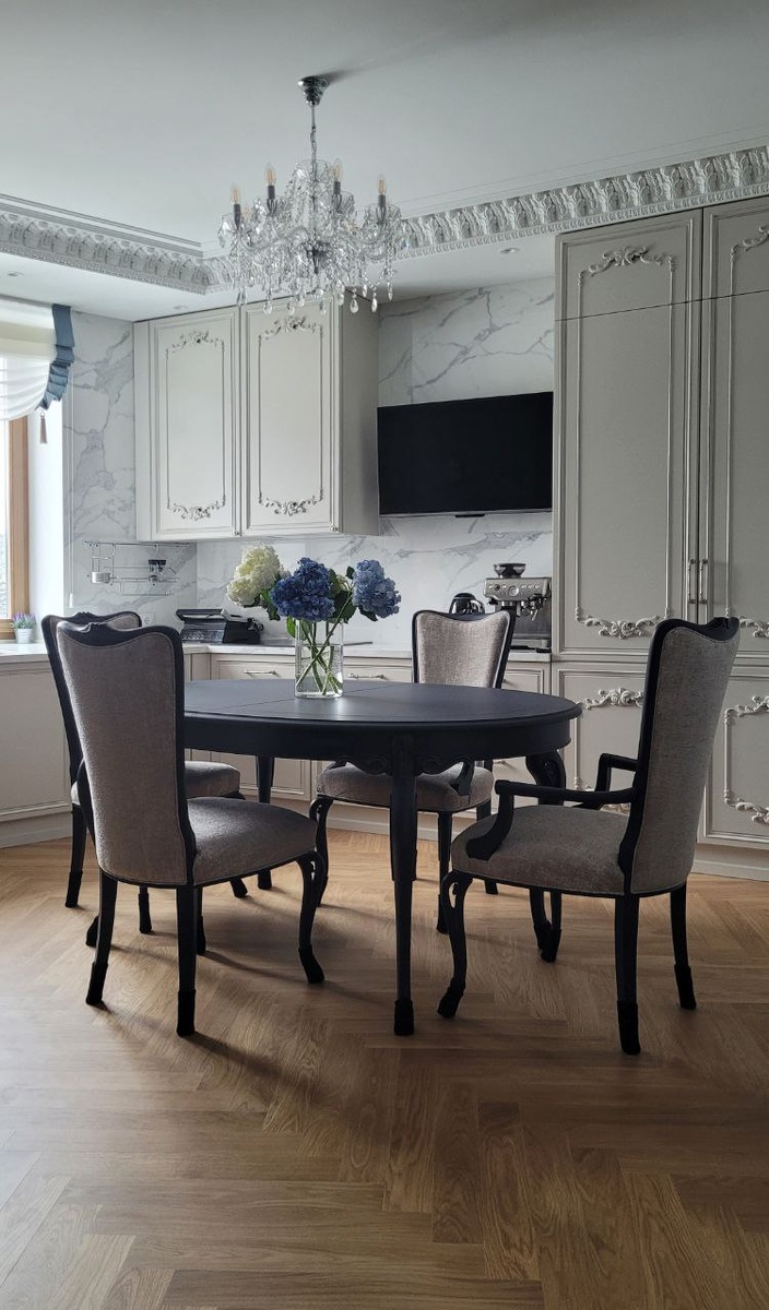 Реализованный проект дизайнера Натальи Нестеренко. Заказчики этого интерьера — семейная пара, которая переехала в Москву из города на Неве. В новой квартире они мечтали о классике: элегантной, спокойной, утонченной. Дизайнер предложила светлую и сдержанную гамму — оттенки серого и голубого, перекликающиеся с атмосферой северной столицы. А с помощью натурального дерева Наталья добавила уюта в интерьер. Мебель из Neopolis Casa стала элегантным дополнением интерьера: — кровать Fratelli Barri — столик, прикроватные тумбы и пуфик Vaccari — обеденный стол и стулья Giorgiocasa Хотите создать похожий интерьер? Оставьте заявку на сайте, чтобы получить персональную подборку мебели в классическом стиле