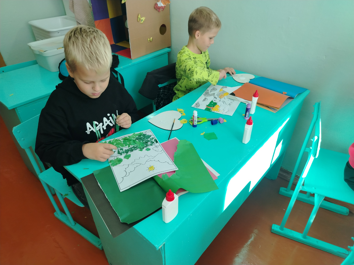 Ученики отделения живопись успевают изучить множество изобразительных техник. Одна из самых интересных - это коллаж в технике аппликация. В этот раз мы трудились над созданием пейзажа. Атмосфера в кабинете царила творческая и весёлая. Коллаж в технике аппликации — это метод создания композиции из различных материалов (бумаги, ткани, фото, фольги и т.д.), которые приклеиваются к основе для формирования единого изображения.