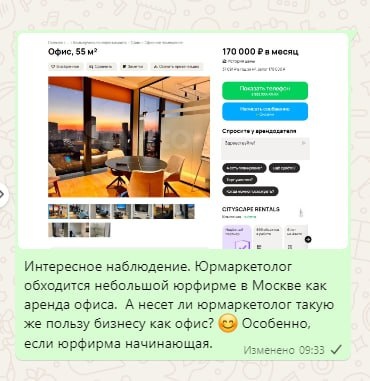 Поднял в чате юрмаркетологов тему. Коллег обижает, когда начинается сравнение затрат на юрмаркетолога и на офис.