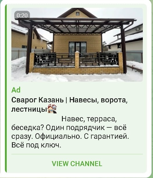 ⛏Кейс: Как мы привлекли 200+ подписчиков по цене 3,2€ в нише строительства через Telegram Ads Проект: «Сварог» — производственная компания из Казани, которая с 2015 года превращает металл в эстетику. Навесы, лестницы, ворота, заборы, перила, кованые элементы — всё под ключ: от замера до последнего самореза. 🖥 Что сделали — Настроили Telegram Ads с упором на геотаргетинг по Казани и РТ — Тестировали разные форматы креативов: от «до/после» до видеообзора проектов — Упор в тексте — на конкретику и доверие: Тестировали аудитории: — люди, интересующиеся строительством и ремонтом — владельцы частных домов и коттеджей — сегмент "дача/загородка" — локальные бизнесы (например, автомойки, кафе, шиномонтаж и т.д.) Результаты — 200 подписчиков из Казани и РТ — Стоимость подписчика — 3.2€, что отличный результат для строительной ниши — CTR: 1.5% 💲Выводы — Геотаргет в Telegram работает 🔥 — особенно если ниша офлайн и привязана к региону — Визуал сильно решает — лучше всего сработали фото/вид