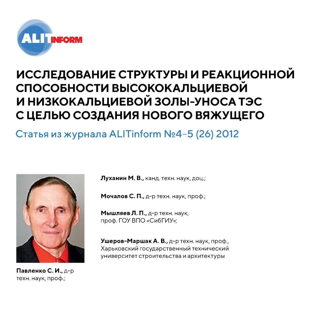 ИССЛЕДОВАНИЕ СТРУКТУРЫ И РЕАКЦИОННОЙ СПОСОБНОСТИ ВЫСОКОКАЛЬЦИЕВОЙ И НИЗКОКАЛЬЦИЕВОЙ ЗОЛ-УНОСА ТЭС С ЦЕЛЬЮ СОЗДАНИЯ НОВОГО ВЯЖУЩЕГО 🔷 Авторы: - Павленко С.И., ГОУ ВПО "СибГИУ" - Луханин М.В., ГОУ ВПО "СибГИУ" - Мочалов С.П., ГОУ ВПО "СибГИУ" - Мышляев Л.П., ГОУ ВПО "СибГИУ" - Ушеров-Маршак А.В., Харьковский государственный технический университет строительства и архитектуры 🔷 Аннотация: Данная работа выполнялась ГОУ ВПО Сибирский государственный индустриальный университет» на основе трехлетней Программы фундаментальных исследований Минобрнауки РФ (2010–2012 гг.) по теме «Изучение теоретических основ создания нанодисперсного силикатного вяжущего из золошлаковых отходов ТЭС». Основная цель работы — разработка научных основ реакционной способности зол ТЭС. 🔷 Ключевые слова: золы-уноса, калориметрическая оценка, механохимическая обработка, нанодисперсное силикатное вяжущее, свободный оксид кальция ➡️ Полный текст статьи на Elibrary ➡️ Общая ссылка на все выпуски #статьи_алитинформ@