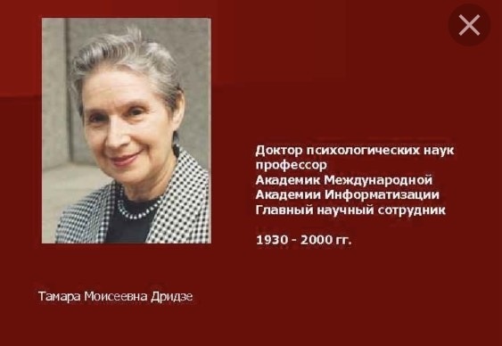 Преамбула. История, о которой здесь рассказывается, – краткий «срез» моих личных воспоминаний о Тамаре Моисеевне Дридзе (1930-2000), докторе психологических наук, профессоре, главном научном сотруднике Института социологии Российской Академии наук. Её научное открытие о механизмах и принципах смыслообразования я лично приравниваю к открытию тайн атомного ядра в физике. Когда Вы встретите в этом рассказе местоимения «Она» или «Её» - это о ней, моём дорогом Учителе и старшем друге.