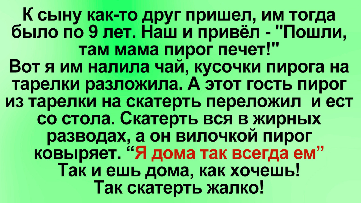 У брата тоже был одноклассник, который любил к нам приходить после школы пообедать и поиграть. А когда сын однажды зашёл к ним, то его к столу не позвали, а велели убирать игрушки, пока они ужинают.