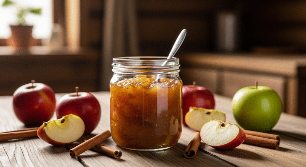 Варенье из яблок с корицей — ароматное лакомство, которое легко приготовить дома. Оно сочетает нежную сладость яблок и тёплый аромат корицы. Такой десерт наполняет дом уютом и напоминает о лете даже зимой. Для вкусного варенья выбирайте плотные, но спелые яблоки без гнили. Лучше подойдут сорта с лёгкой кислинкой. Сначала тщательно вымойте фрукты, затем удалите сердцевину и нарежьте ломтиками. Это ускорит приготовление и сохранит форму плодов. Корица может быть молотой или в палочках. В первом случае вкус получится равномерным. Во втором — аромат более мягкий. Добавьте немного лимонного сока. Он предотвратит потемнение и подчеркнёт свежесть яблок. Для одной банки варенья возьмите: Сначала сварите сироп. Для этого нагрейте воду с сахаром и помешивайте, пока кристаллы не растворятся. Затем добавьте яблоки и корицу. Варите на слабом огне около 25 минут, пока кусочки не станут мягкими. После этого можно пробить смесь блендером, если хотите однородное варенье. Или оставьте кусочки — так полу