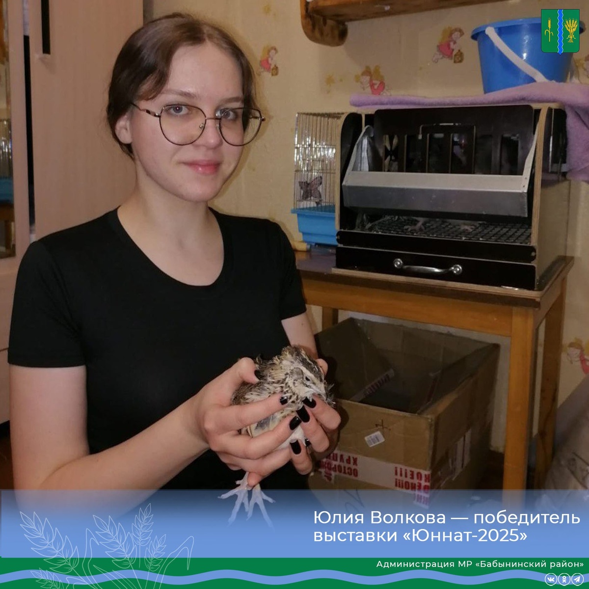 Юлия Волкова — победитель выставки «Юннат-2025»! С 1 сентября по 1 октября 2025 года в Областном центре экологии, краеведения и туризма прошла областная выставка «Юннат-2025». В этом году выставка собрала юных участников из Калужской области, которые продемонстрировали свои проекты в различных номинациях, включая «Чудеса на грядке» и «АгроСемья». Особую гордость вызывает успех нашей Волковой Юлии, которая заняла первое место в номинации «Личное подсобное и пасечное хозяйство» и получила право участвовать в финале Всероссийского конкурса в ноябре. Проект Юлии был посвящён выведению птенцов перепёлки. Поздравляем Юлию и её научного руководителя Ларису Ивановну Шашкину с этой замечательной победой!