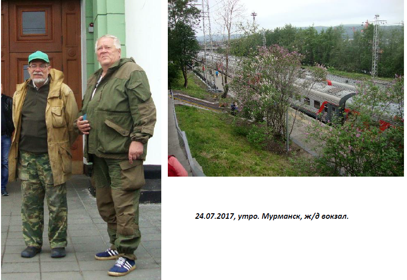22 июля, собравшись в Москве, загружаемся в поезд № 92 Москва – Мурманск. С нами две собаки, поэтому вагон заранее выбрали «собачий», он оказался старым, без биотуалетов и кондиционеров. Кроме того, учитывая, что проводницами в вагоне были студентки из стройотряда, слишком комфортной поездка не была. Ещё проезжая по Карелии, начали интересоваться на станциях у местных продавцов-лоточников, как обстоят дела с водой в реках и дарах природы в лесу. Воды много, а вот грибов пока совсем нет, ягоды ещё не созрели. Правда, отдельные лоточники предлагали морошку, но приглядевшись к ягоде, мы сразу поняли, что собрали её совсем недозрелой, даже не покрасневшей, после лёжки она немного пожелтела, но вреда от такой ягоды значительно больше, чем радости. На Кольском положение ещё хуже, ягоды, даже ранняя морошка только зацветают. Всему виной затяжные холода в начале этого лета на всей Европейской части России.