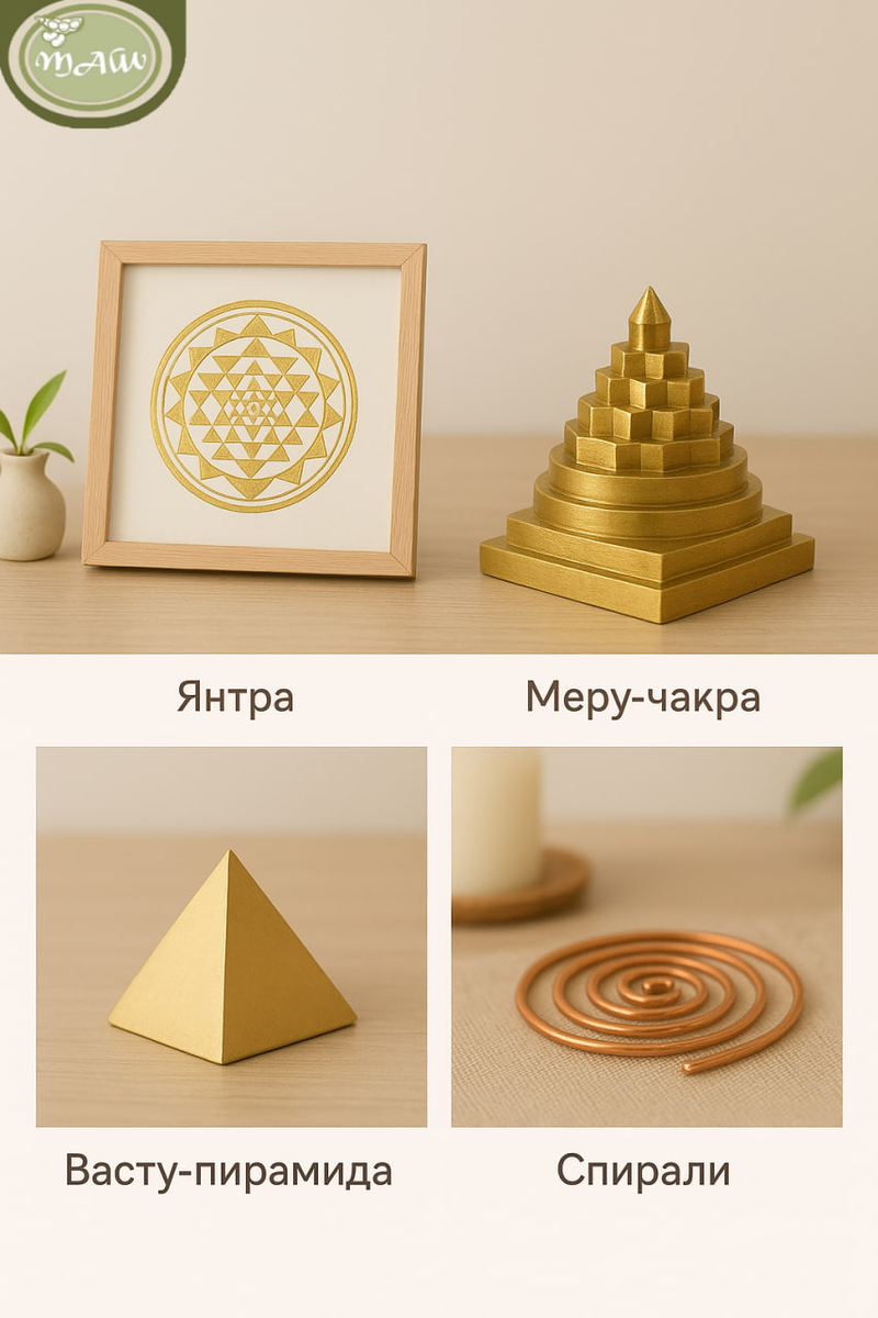 Когда мы говорим про гармонию дома, важно не только убрать лишнее и правильно расставить мебель. Пространство влияет на нас ещё на уровне тонкой энергии. И здесь на помощь приходят Васту-артефакты. Это не эзотерика и не «магия». Всё основано на законах физики и психологии: 🔶 формы и символы создают определённые вибрации, влияя на пространство, 🔶 сакральная геометрия работает как «архитектура энергии», выравнивая её потоки, 🔶 цвета воздействуют на психику и настроение, поддерживая баланс. 🟠Янтры — специальные геометрические рисунки для защиты и гармонии. 🟠Меру-чакра — объёмная шри-янтра, мощный инструмент для устранения серьёзных дисбалансов. 🟠Васту-пирамида — усиливает энергию центра дома, помогает сбалансировать пространство. 🟠Спирали и медная проволока — направляют и усиливают потоки энергии (медь — отличный проводник). ⚡️ Важно понимать: если просто купить и поставить эти предметы «куда-то» — они не будут работать. Чтобы артефакт дал результат, нужно точно знать, в какой зоне