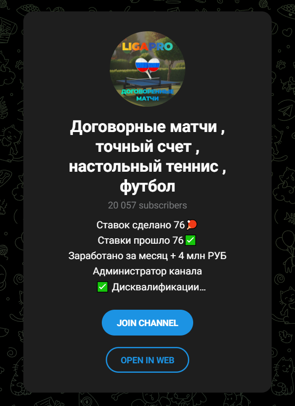 Все что нужно - ПОДПИСАТЬСЯ и прочитать закрепленный пост 💸 Если вам говорят, что прогноз “заходит на 100 %” или “точный счёт гарантирован” — это уже повод усомниться. Настоящий спорт непредсказуем, и гарантировать результат — нереально. Часто делают так: сначала публикуют для “ограниченного круга” платные прогнозы, обещают эксклюзив и доступ к “утечке инсайдерской информации”. Но после оплаты прогноз либо не приходит, либо оказывается неверным. На каналах часто публикуют “отзывы клиентов”, где описание успеха однотипно: “вложил, по
