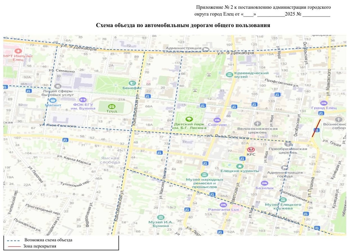 В это время елецкие автолюбители смогут объезжать перечисленные участки по дорогам согласно приложению № 4.