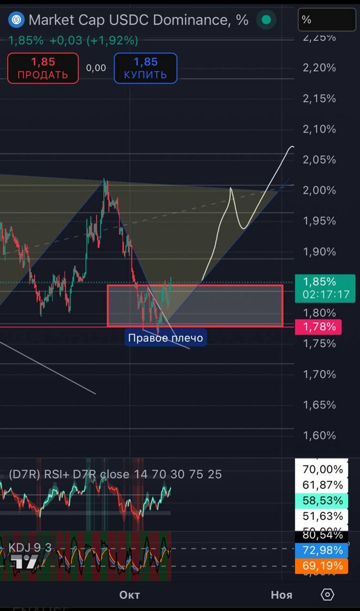 #usdc.d продолжает восходящее движение, будьте аккуратны с Лонгами, пока не достигнем 2