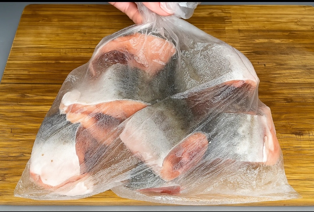 3. В пищевой пакет перекладываем рыбу, отправляем к ней соус и тщательно перемешиваем. Даем промариноваться 30 минут.