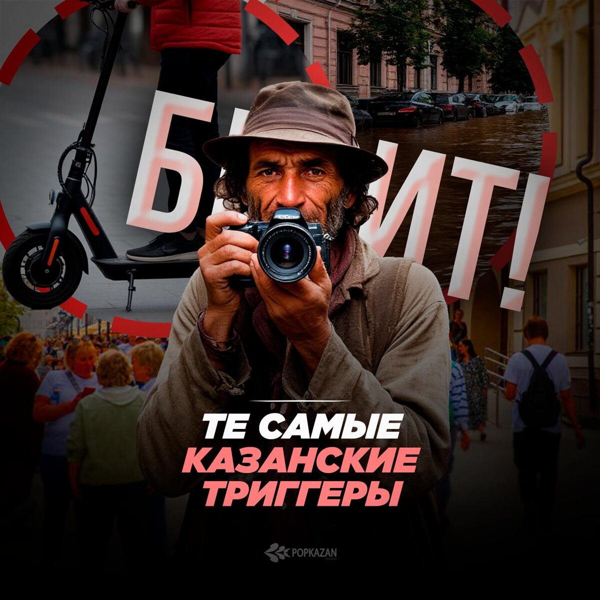😈 ТЕБЯ ЭТО ТРИГГЕРИТ Все, что тебя тебя так бесит в Казани, но ты молчал, потому что проработал это с психологом А что тебя больше напрягает? 😡 - ЦЫГАНЕ-ФОТОГРАФЫ 👾 - ЛИВНЕВКИ 😈 - ЭЛЕКТРОСАМОКАТЧИКИ 😁 Наш telegram-bot про Казань
