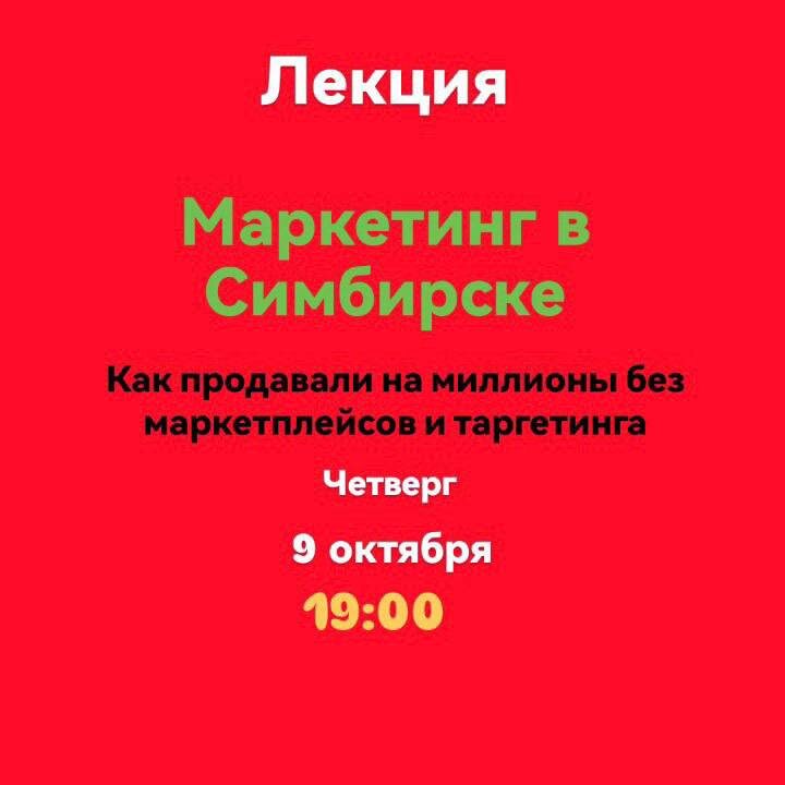 В ответ на пост Уже сегодня состоится лекция «Маркетинг 19 века в Симбирске» 🗓️ 9 октября 19:00 📍в лектории по адресу Карла Маркса, 18 Что Вы узнаете: • Истории продвижения товаров и услуг в 19 веке: примеры ростовского маркетинга, которые работают до сих пор, а какие незаслуженно забыты. Узнаем про маркетинговые ходы купцов и торговцев, которые опередили своё время • Как стать поставщиком Императорского двора? • Как сделать так, чтобы люди обивали порог, мечтая работать на твоём производстве? 🏷️ 400₽ Лекцию проведёт историк, генеалог, тюрколог, экскурсовод и просто хороший человек @alexulyanovsk Запись у него же 👆🏼