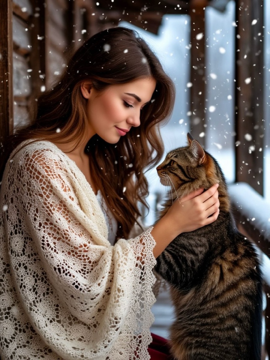 «Зимняя идиллия». Нейросеть: Шедеврум про. #цифроваяживопись #нейросеть #девушка #нейроарт #идеи #цифровоефото #рисунок #шедеврумстудия #шедеврум #нейрофото #артыотнейросетей #брюнетка #aiartwork #DigitalDreamscapes #digitalart #нейроSD #aiwoman #иллюстрация #зима #кот #ai #арт