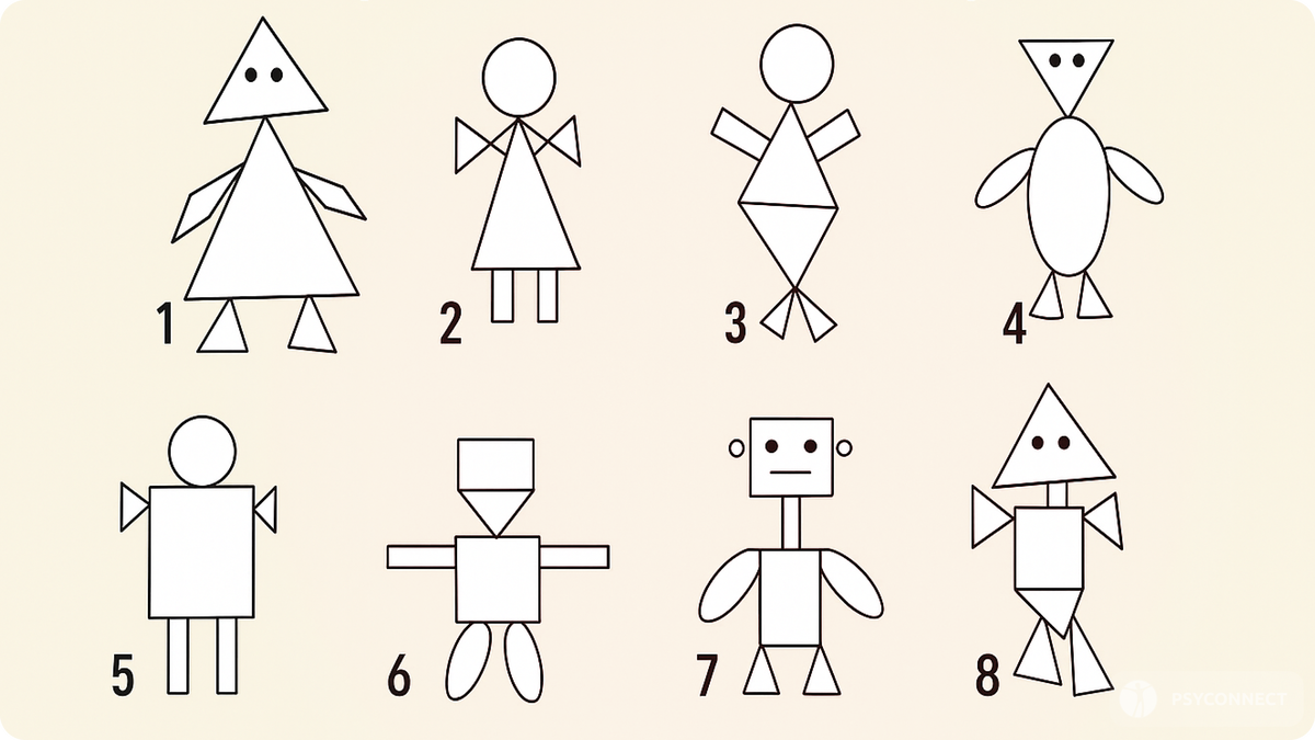 Перед вами восемь условных силуэтов человека, составленных из элементарных фигур - треугольников, кругов и квадратов. Взгляните на них и выберите тот образ, который вам ближе по духу. Он поможет понять, какие качества личности у вас наиболее выражены и как вы проявляете себя в разных жизненных ситуациях. 1 тип - Лидер Представители этого типа обладают выраженными организаторскими способностями. Им легко брать ответственность и управлять другими. Они опираются на принятые в обществе нормы, умеют говорить убедительно и часто становятся центром внимания благодаря развитой речи и умению донести мысль. В социуме чувствуют себя уверенно, проявляют инициативу, но обычно не переходят грань дозволенного. Однако сила этих качеств зависит от уровня личностного развития. У зрелых людей они проявляются осознанно, у менее развитых могут быть непостоянными или неуместными в конкретной ситуации. Это правило применимо ко всем описанным типам. 2 тип - Добросовестный исполнитель Этот тип во многом похож