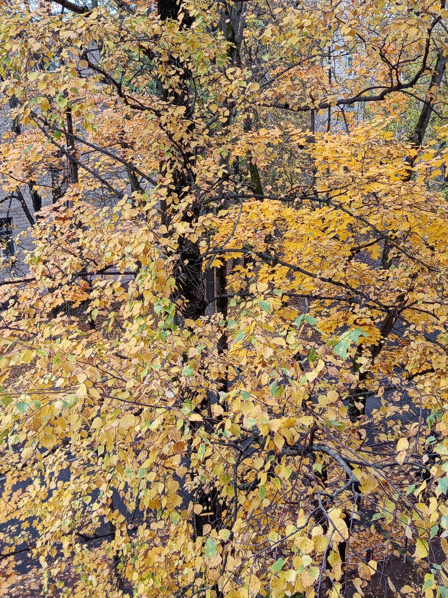 Всем здравствуйте! Не думала, что буду писать об октябре. Но нынешний тёплый ( пока) и светлый октябрь согрел мою душу, удивил в очередной раз своими красками и золотыми дождями! Мне всегда нравилась пора золотой осени, светлой и теплой! Не знаю, замечали ли Вы , но краски осени каждый год разные на одних и тех же деревьях! А ещё обожаю особую октябрьскую светлость! Что я имею ввиду? А представьте себе , как на город опускается вечер, сгущаются сумерки ( ведь день с каждым днём становится короче), а под окном стоит , например, золотой клён и от его яркой желтой листвы становится в комнате светлее и кажется, что время замедляет свой ход, и вечер входит в твой дом чуточку позже, чем ко всем остальным! Правда здорово! И настроение чуть- чуть улучшается, потому что у тебя день немного длиннее и есть за окном своё солнышко! А ещё я обожаю октябрьские золотые дожди! Когда от каждого дуновение ветерка на землю сыпется янтарный или пурпурный дождь! Пусть эта красота ненадолго, но от её созерц