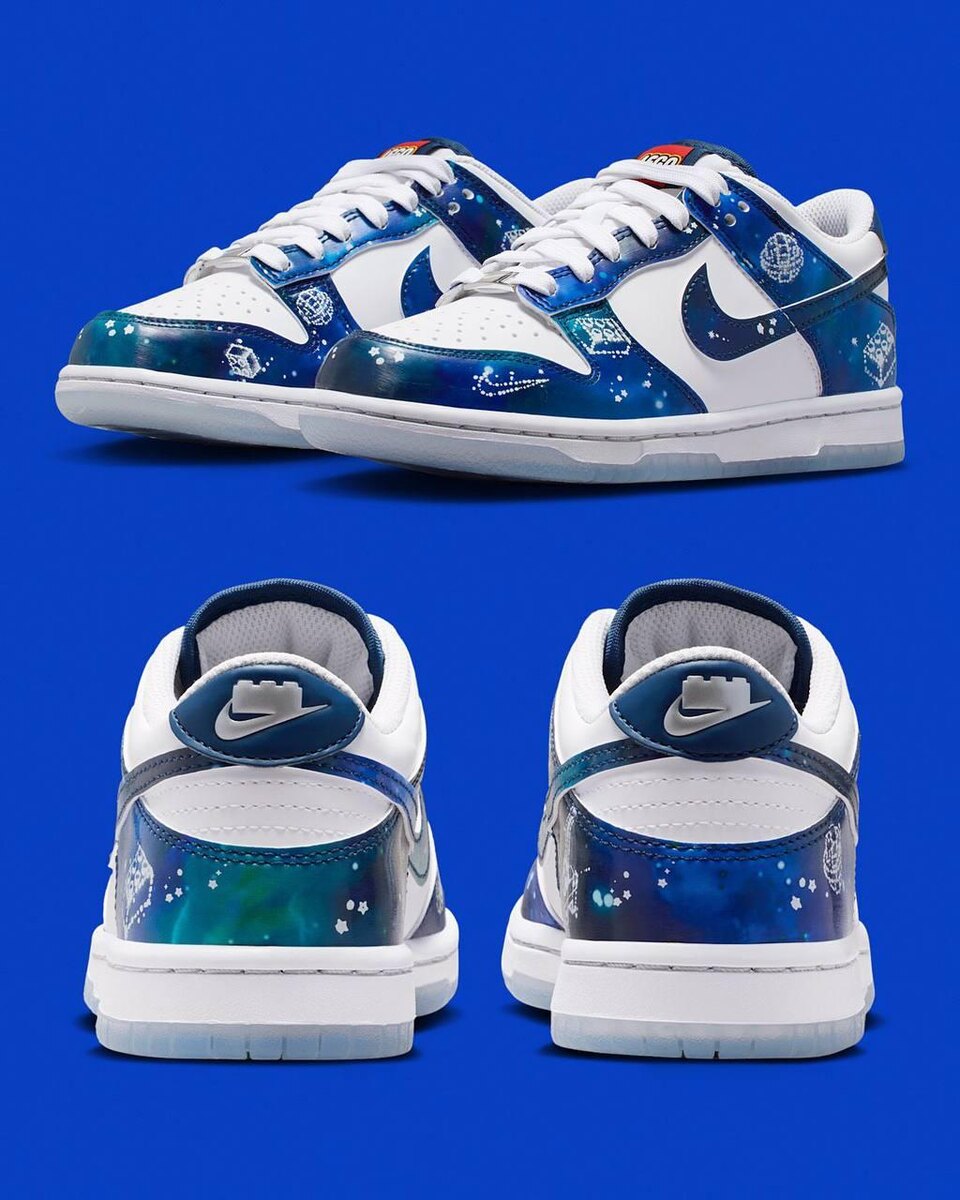 Смотрите, Lego и Nike анонсировали космические кроссы 🚀 Модель Nike Dunk Low GS «Galaxy» выйдет 22 октября. На обуви есть узнаваемые элементы Lego: человечкек, деталь конструктора, баскетбольный мяч — и всё это в виде созвездий. Ожидаемая цена — $125 (около 10,000 рублей). Смотри, как прикольно (Регина Ахметова) — ежедневно публикую рекламные кейсы