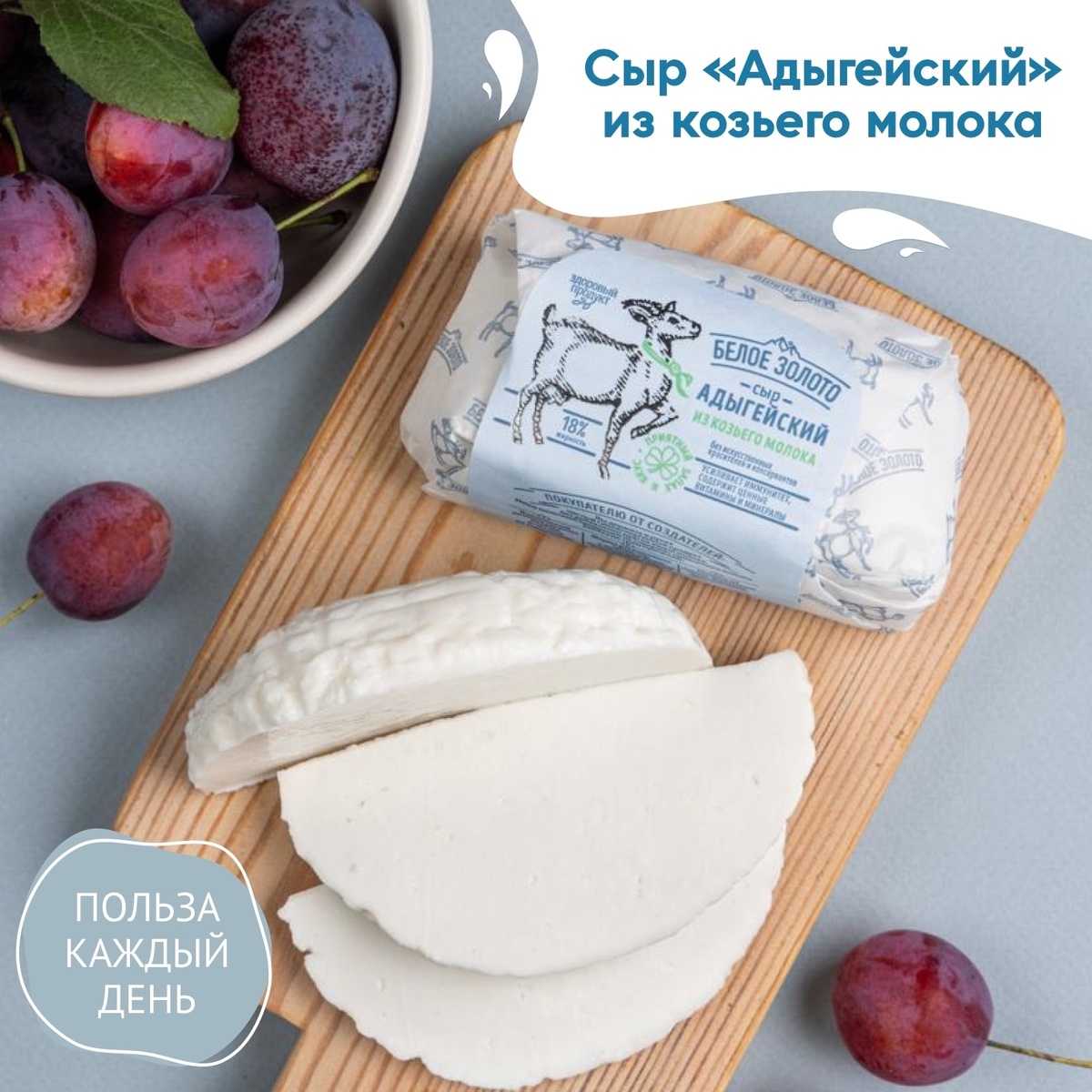 Адыгейский сыр "Белое Золото" — почему он так полюбился нашим покупателям? Нежнейший козий сыр «Белое Золото» узнают по кипенно-белому цвету, пластичной однородной структуре и особой чистоте вкуса. И, конечно же, у нас есть свои секреты. Секрет №1 Мы изготавливаем адыгейский сыр из молока утренней дойки. Именно так получается максимально полезный продукт, с сохранением полного состава нутриентов свежего молока и "чистым" послевкусием. Cекрет №2 На наших фермах действуют строгие протоколы, гарантирующие высокое качество сырья. Например, козочки в период гормональной активности «уходят на каникулы», что позволяет защитить молоко от специфического запаха. Вернуться в доильный зал они смогут только после появления потомства, когда их молоко вновь становится сладким, сливочным и насыщенным витаминами. Cекрет №3 В составе адыгейского сыра "Белое Золото" всего 3 ингредиента: козье молоко, сыворотка и соль. Мы не вносим в рецептуру искусственные добавки, стабилизаторы и консервирующие вещества