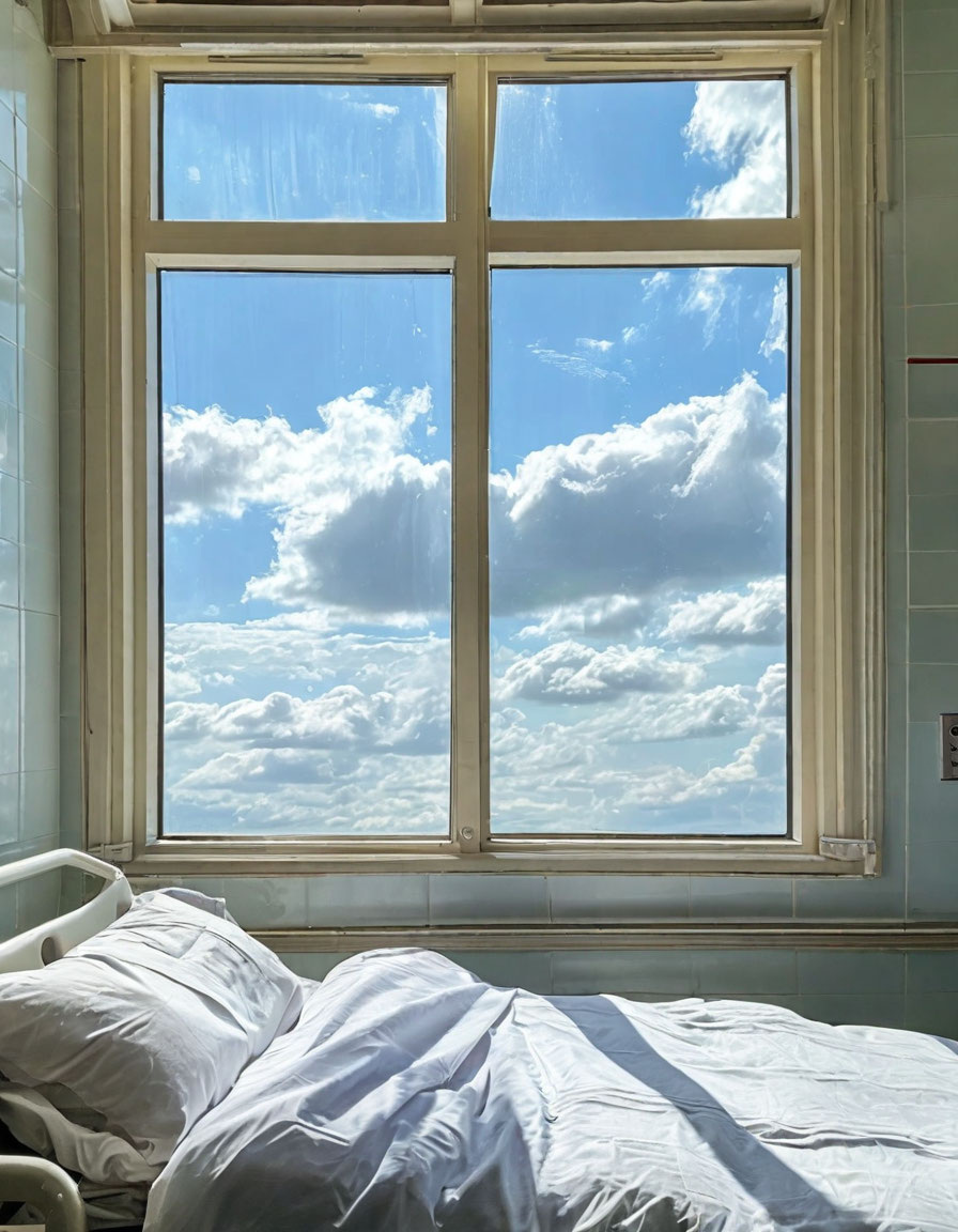 Алик Борисович молча разблокировал колёса койки, чуть повернул её так, чтобы можно было увидеть край окна. За стеклом в паре метров была лишь каменная стена другого корпуса. Глухая мёртвая стена.