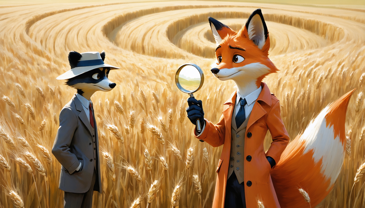 Всё началось с того, что фермер Барсук в панике вломился ко мне в дом среди ночи, размахивая у себя над головой фонарём и крича: «Инопланетяне! Похитили мою лучшую корову Зорьку! Оставили странные круги на поле!». Я, конечно, не верил в зелёных человечков. Но Барсук был моим старым приятелем, а пропажа коровы — дело серьёзное. Я взял свою лупу и отправился на место происшествия. Поле Барсука было идеально ровным, кроме одного места. Там, посреди овсяного поля, аккуратным кругом лежали примятые стебли. И не просто примятые — они были аккуратно уложены по спирали, будто кто-то гигантской рукой выложил сложный узор. По краям круга земля была странно оплавлена, а в воздухе витал сладковатый запах, напоминающий жжёный миндаль. — Видишь?! — захлёбывался Барсук. — Это же классические круги! Только… они из овса, а не из пшеницы. И пахнут не как обычно. Я осмотрел «посадку». Ни следов техники, ни отпечатков ног. Ничего. Только идеальная геометрия и этот тревожный запах. Я полез в карман за блок