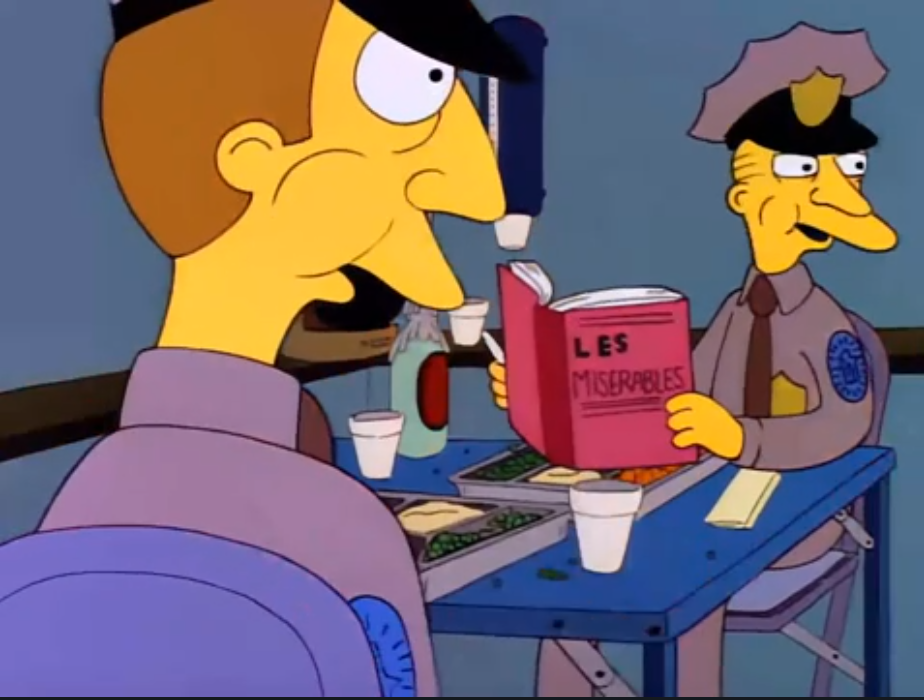 В с17с8 Лиза говорит, что мировая литература полна примеров раскаяния и упоминает Жана Вальжана. Кстати, часть сюжета этой серии отсылка к книге в целом. Сайдшоу Боб был заключенным и теперь избран мэром, как и Жан Вальжан.