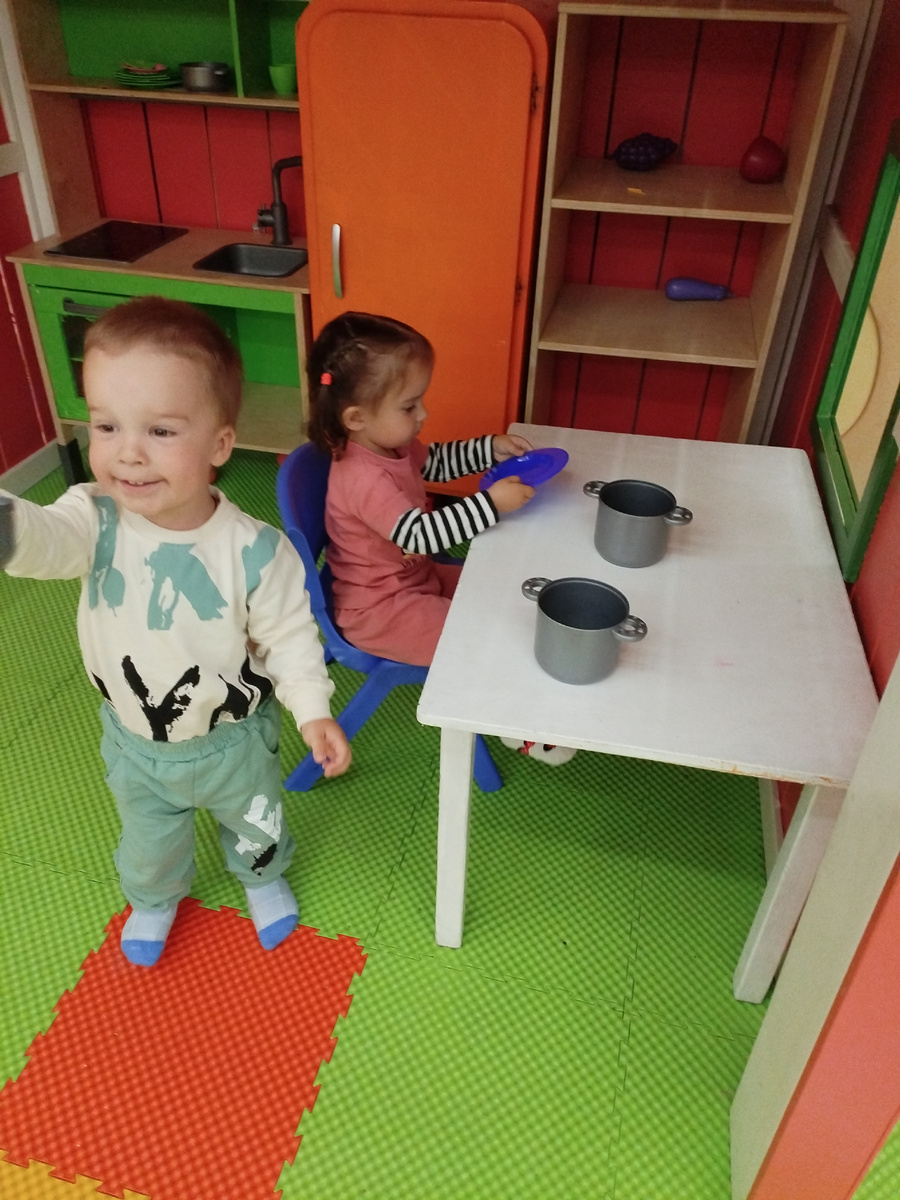Много игровых зон. Наши поварята зависли в кухонной зоне. Кашу варили, всех кормили, посуду мыли, по полочкам посуду раскладывали. Надо бы и домой нам такую кухоньку. Двойняшки и дома хорошо играют с посудой, плитой. Но у них маленькая кухонька есть. Им подарила бабушка. Не знаю, стоит ли большую покупать или пока хватит этой.