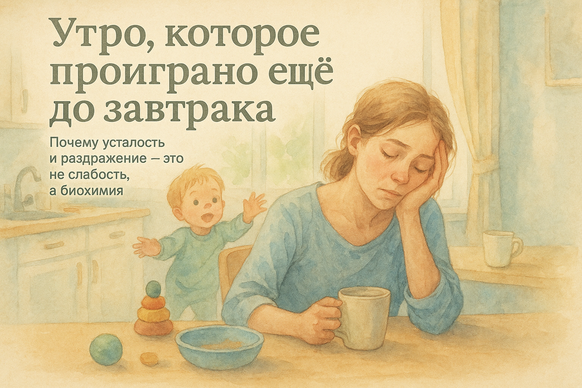 Это утро, которое проиграно ещё до завтрака. Ты просыпаешься уже уставшей. Ребёнок зовёт, на кухне шумит чайник, а внутри — пустота и раздражение. Хочется хоть немного тишины, но день только начался. Ты срываешься на ребёнка — и тут же накатывает вина. Кажется, ты просто не справляешься. Но правда в другом. Твоя раздражительность — это не слабость характера и не «плохое материнство». Это биохимия. Когда уровень сахара, гормоны и сигналы усталости выходят из равновесия, тело будто теряет связь с мозгом. Оно перестаёт распознавать, где голод, а где стресс, где сонливость, а где просто тревога. Кортизол поднимает пульс, падает уровень серотонина, и ты ощущаешь всё это как раздражение, усталость, апатию. Иногда кажется, что ты просто стала нервной — но на самом деле организм подаёт сигналы: «Мне тяжело, дай мне восстановиться». И вот что важно: это не про силу воли. Это про топливо, сон и воду, которые позволяют биохимии вернуться в равновесие. И да, это можно починить. Когда уровень са