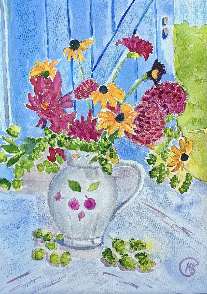 Нарисовала такой букет на окне со ставнями акварелью , фото 2, потом детализировала и доработала фактуру сухой пастелью, фото 1. На фото 3- референс . #drawingflowers #flowermakespeoplehappy #watercolordrawing #watercolorart #stilllife #watercolor #softpastels