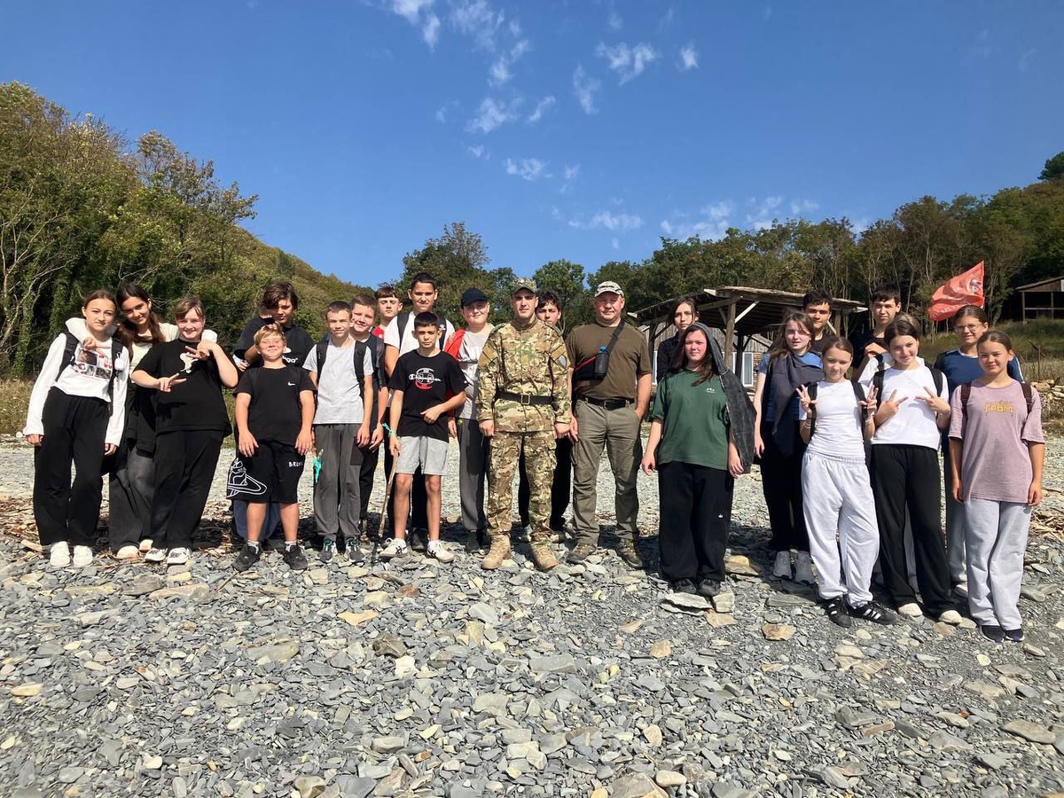 8 октября учащиеся СОШ №17 с.Архипо-Осиповка 7Б военно-патриотического класса пограничной направленности (кл. рук. Новиков С.В.) совершили пеший обход береговой линии Тешебс - Архипо-Осиповка в сопровождении военнослужащего погранзаставы, прапорщика А.Г. Манян.