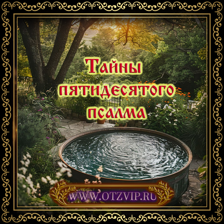 Псалом 50 известен многим, его еще называют "покаянный псалом" или "псалом кающегося". С этим псалмом связанно много обрядов и множество применений в жизни. Отдельные стихи псалма используются для разных жизненных ситуаций и случаев. Если девятый стих этого псалма прочитать 12 раз на воду, а потом облиться ею, то так снимаются всякие порчи, сглазы и черные наведения. Этот метод очень сильный для очищения.