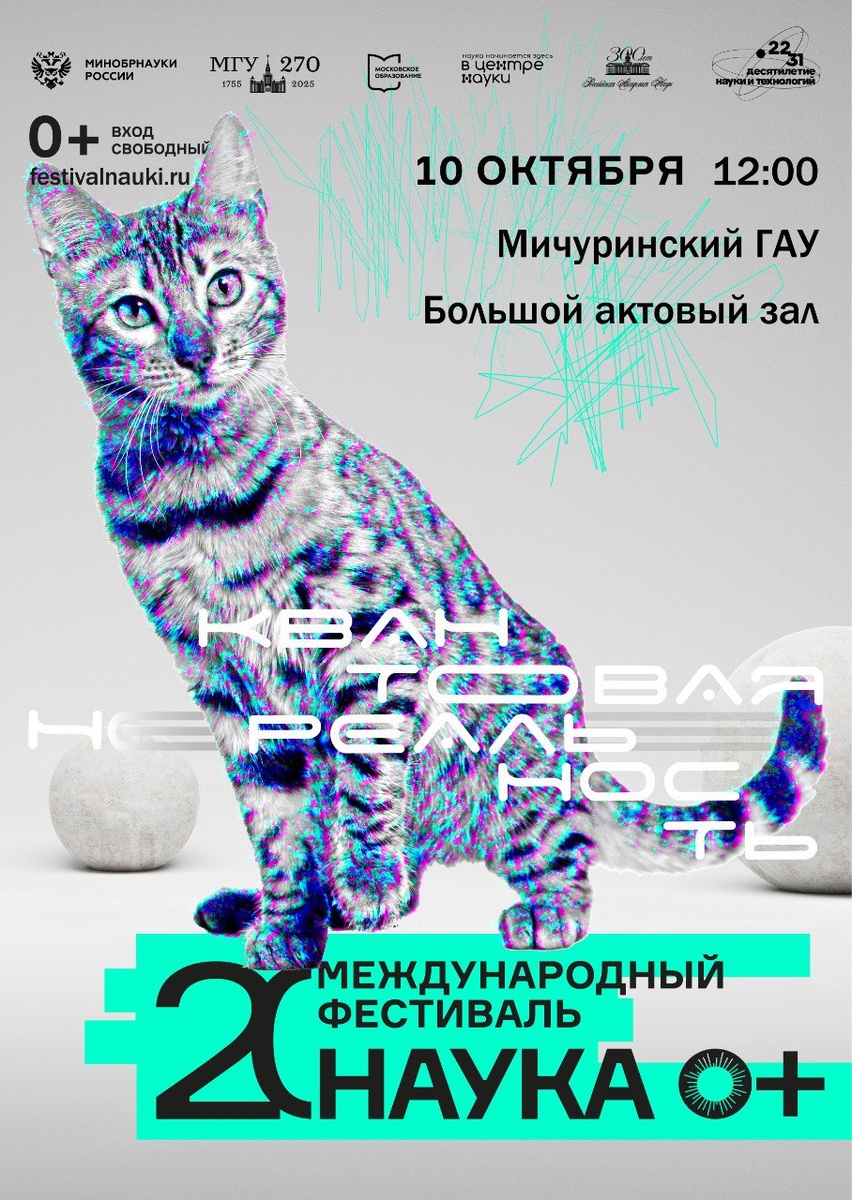 10 октября в 12:00 в большом актовом зале Мичуринского государственного аграрного университета состоится открытие Фестиваля науки — важного события, объединяющего науку, образование и молодежь. Тема 2025 года — «Твоя квантовая Вселенная», которая приурочена к Международному году квантовой науки и технологий, объявленному ООН. Фестиваль науки в Мичуринском ГАУ станет площадкой для презентаций, лекций, мастер-классов и круглых столов которые помогут лучше понять современные научные открытия и современные технологии. Это уникальная возможность погрузиться в атмосферу инноваций и обменяться знаниями с учёными и экспертами. Приглашаем всех студентов, преподавателей и гостей университета принять участие в открытии и последующих мероприятиях фестиваля! #МичуринскийГАУ #ФН2025 #ТвояКвантоваяВселенная #НаукаДляВсех