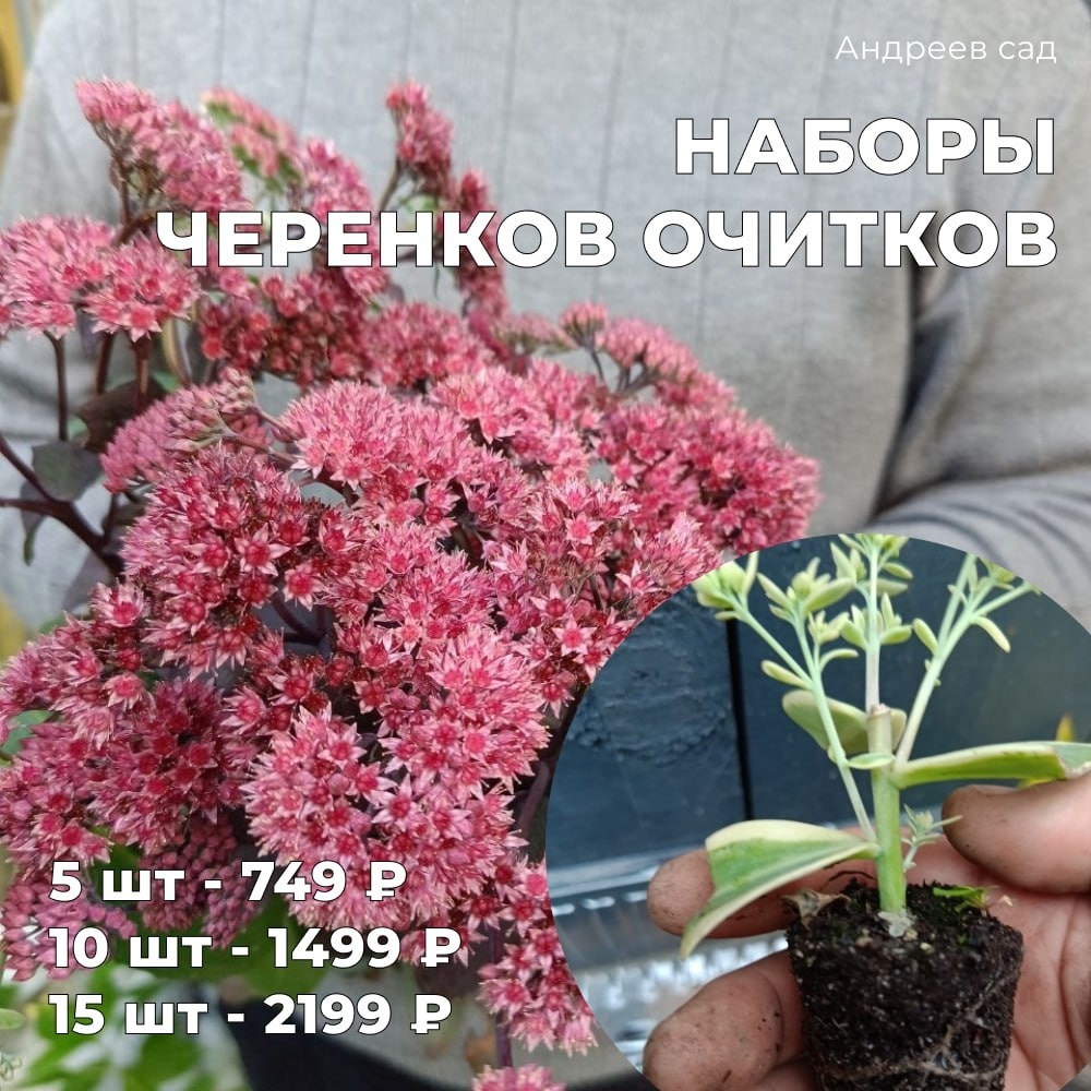 💜💜💜💜💜💜💜💜💜 очередную порцию красоты для сада выгодно! Наборы черенков очитков собственного черенкования. 👇🏻 5 шт - 749 руб 10 шт - 1499 руб 15 шт - 2199 руб И сразу отвечу на многие вопросы: 👇🏻 1. Какие сорта войдут? Это будет микс разных сортов, многих даже в каталоге не найдете, потому что НОВИНКИ. 2. МОЖНО сажать сейчас! 3. Как поедут? В перфорированных пакетах. Таких наборов смогу собрать только 3. Кому какой? ☎️ WhatsApp ПРИВЕТ,АНДРЕЙ 💚СПАСИБО 🤝ОТЗЫВЫ 🍃ПРИМЕРЫ САЖЕНЦЕВ #очитки #очиток #седумы #седум #саженцы #растениядлясада