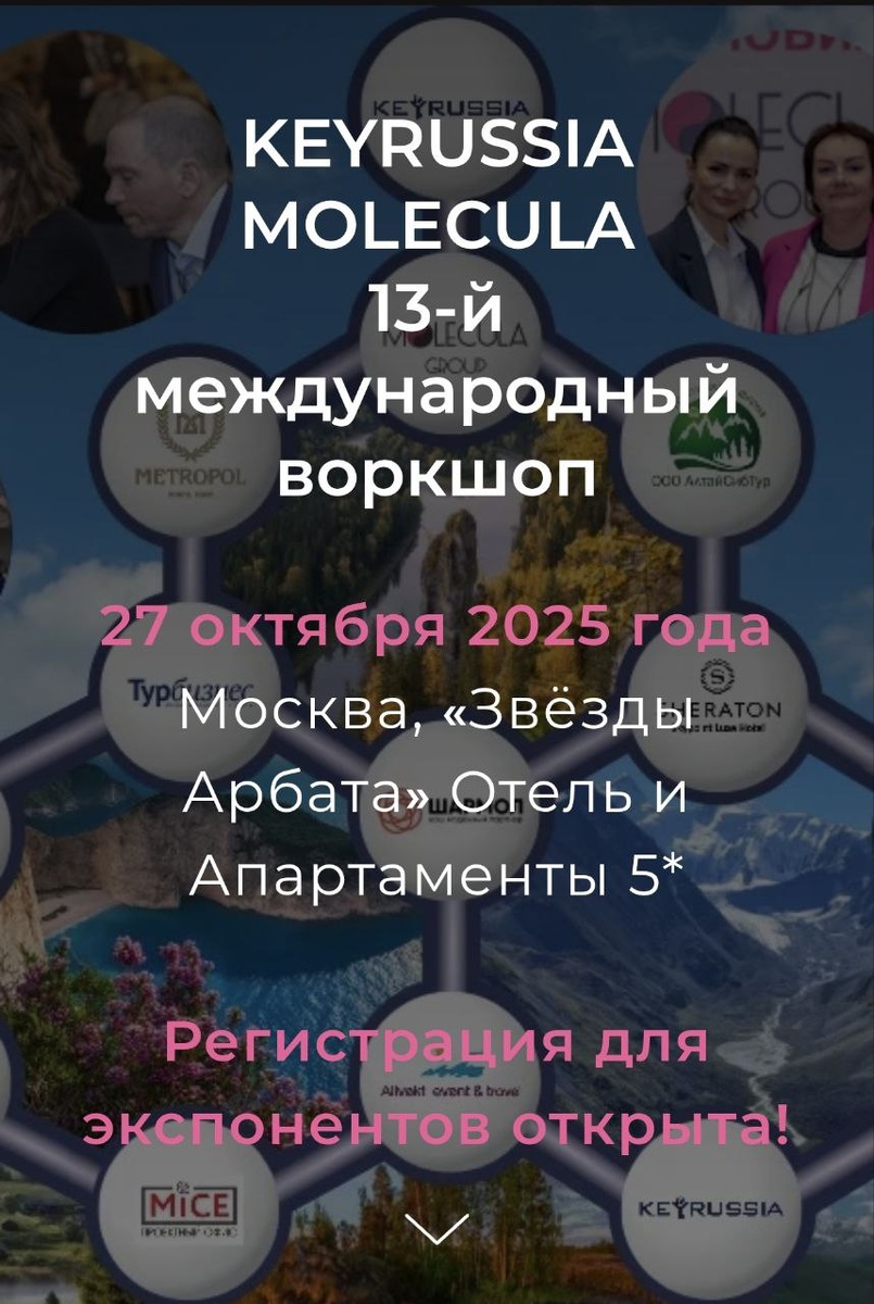 Мы встретимся снова на 13-м международном воркшопе KEYRUSSIA MOLECULA - событии для организаторов деловых, рекламных и мотивационных мероприятий в России и за рубежом, а также для специалистов сегмента конгресс услуг и FIT tailor made.