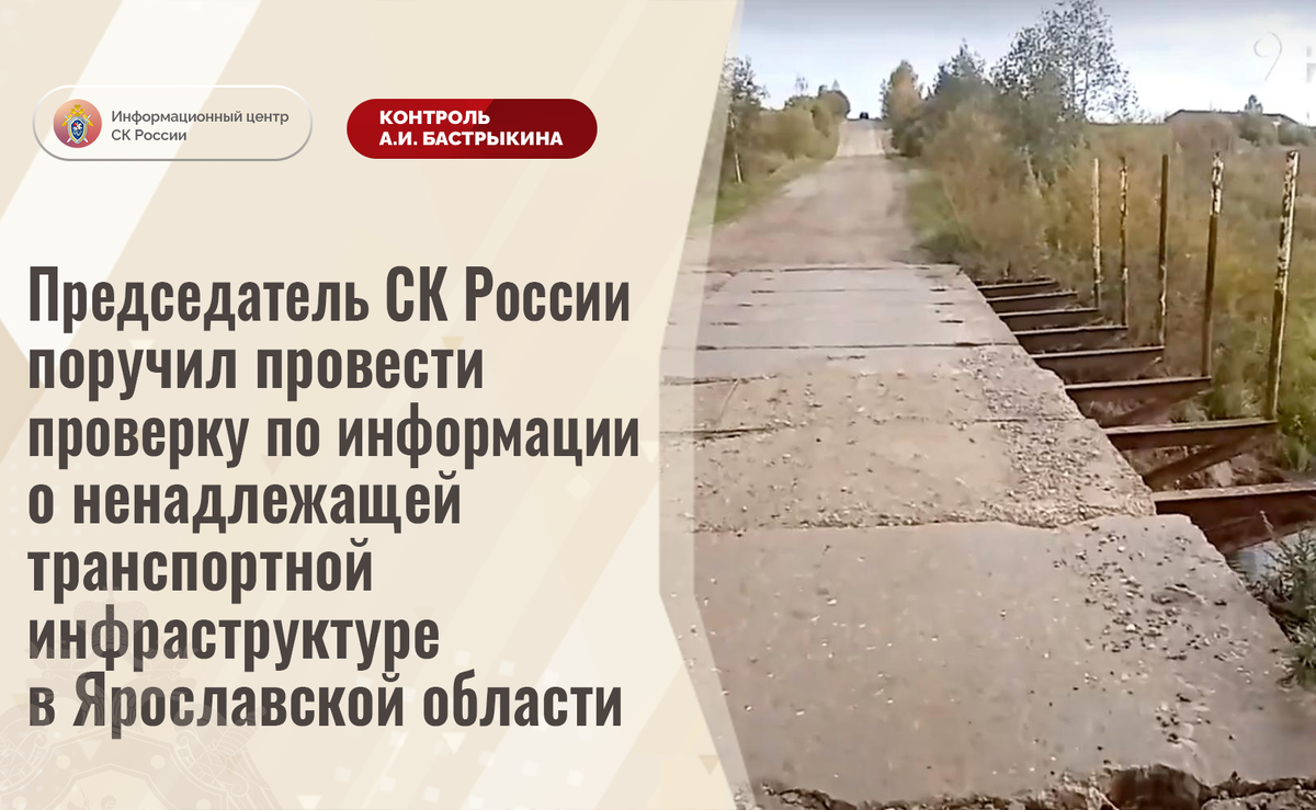 Председатель СК России поручил провести проверку по информации о ненадлежащей транспортной инфраструктуре в Ярославской области