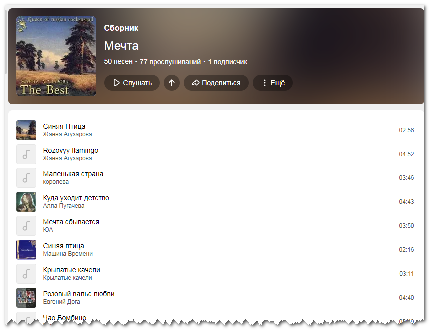 В него вошли произведения, которые вызывают мечтательное настроение. По крайней мере у меня. Послушайте и напишите мне, насколько вам удалось погрузиться в мечтательное настроение. Ссылка на сборник - https://ok.ru/music/playlist/15006826527