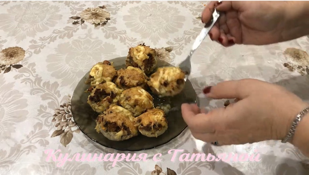 Ингредиенты: шампиньоны крупные — 8–10 шт.; фарш — 120–140 г; сыр — 100 г; луковица — 1 шт.; чеснок — 2 зубчика; майонез — 2–3 ч. л.; смесь пряных трав, смесь перцев — по вкусу; соль. Шампиньоны вымойте, обсушите и аккуратно обрежьте ножку острым ножом, отделяя её от шляпки. Затем чайной ложкой тщательно удалите коричневые перепонки. Ножки оставьте для начинки, а тёмные перепонки выбросьте. Грибные шляпки слегка присыпать внутри солью, дать полежать пару минут и наполнить начинкой по края. Выложить шампиньоны, фаршированные фаршем, на противень, который, чтобы избежать подгорания грибного сока. Запекайте шампиньоны с фаршем около 10–15 минут при 180 градусах. Затем посыпьте их оставшимся тёртым сыром и добавьте немного майонеза сверху. Продолжайте запекать ещё столько же. Сырные «шапочки» должны плавиться и аппетитно подрумяниваться. Дайте грибам немного остыть, затем переложите их с противня на блюдо. Чтобы блюдо выглядело аппетитно, выложите шампиньоны с фаршем, запечённые в духов